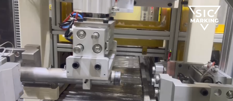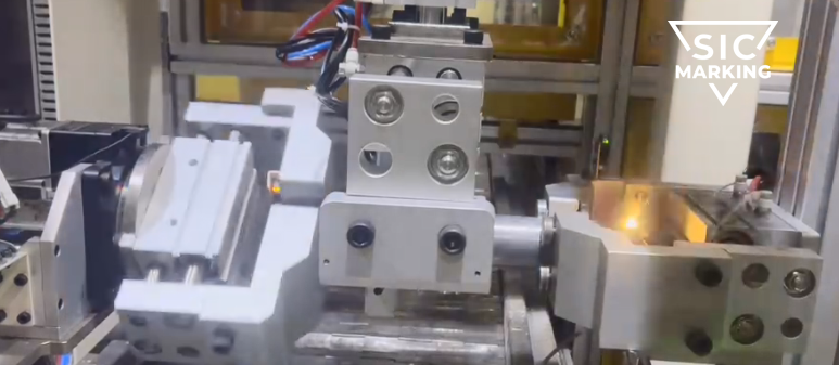 1、西刻標識采用一整套激光清洗集成方案,使用i104激光清洗設備,以15秒/件的頻率,高效去除減震器的焊接部分氧化層。
